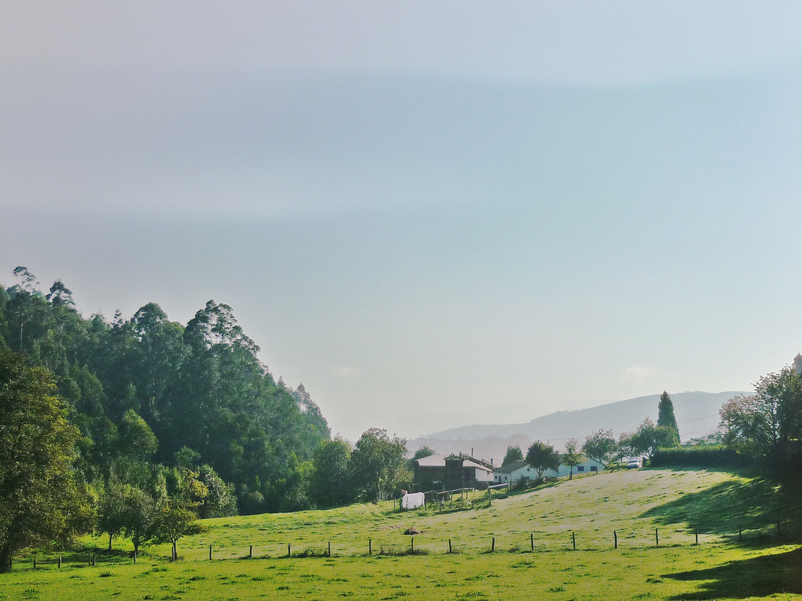 Por las mañanas el valle está cubierto de una niebla ligera cuya masa de aire viene cargada de diminutas gotas de agua salada recogidas en el mar, a unos diez kilómetros de aquí, y que se introduce en el valle desde la Ría del Eo. Jose dice que en los próximos días la niebla bajará y ya no descubrirá el valle hasta la primavera, que fue lo que pasó el año pasado, su primer invierno aquí. Pero estamos teniendo suerte y estos días la niebla levanta, no llueve y luce el sol, lo que reduce considerablemente la sensación de humedad ambiental y nos permite trabajar en los exteriores de Casa Xica.